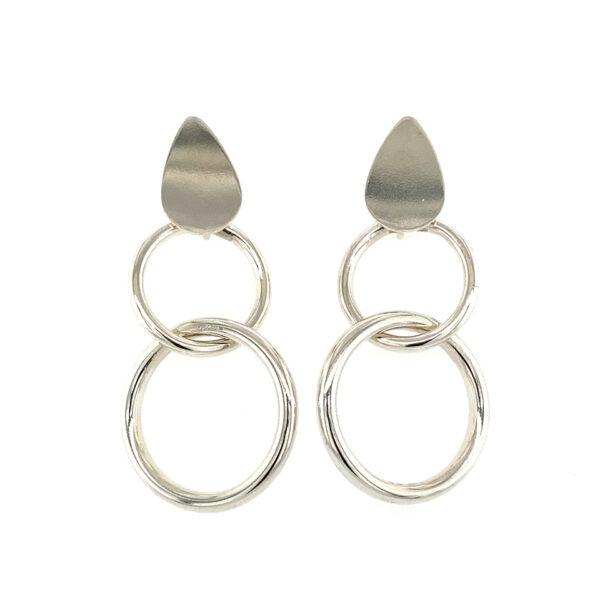 Zilveren oorbellen met druppel vormige stekers en ringen van buis.