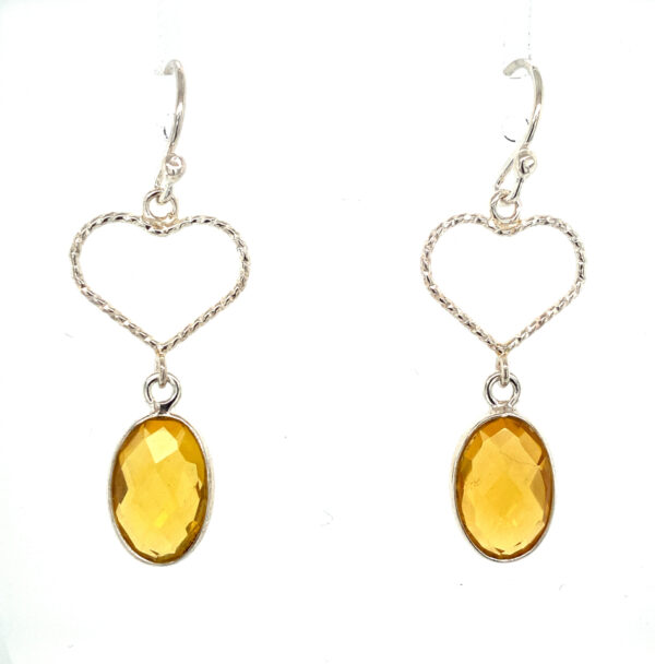 Zilveren hart oorhangers met Citrien